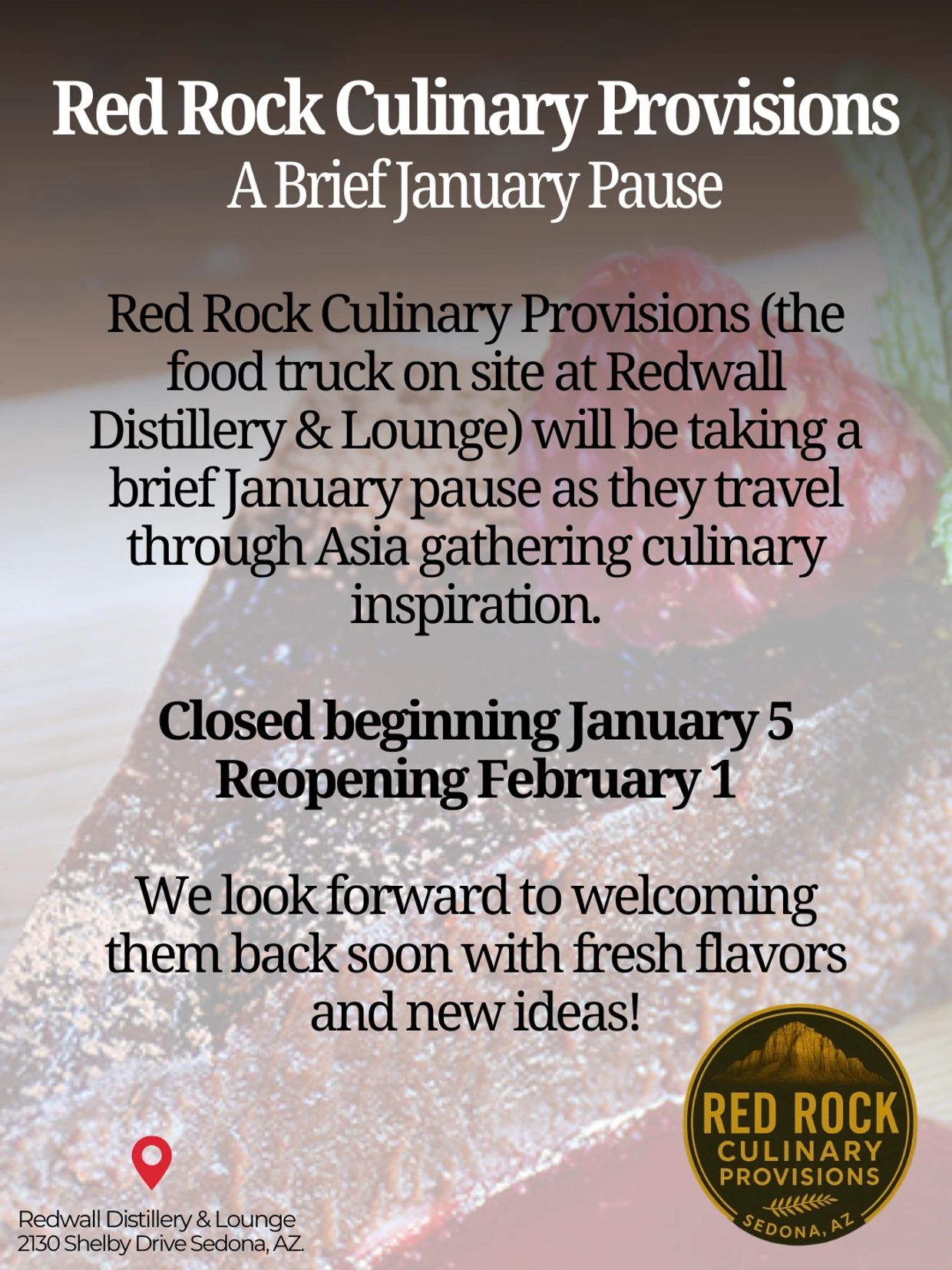 Located on the property of Redwall Distillery & Lounge, this culinary concept perfectly complements our sophisticated atmosphere, offering thoughtfully prepared dishes that pair beautifully with our craft cocktails and laid-back Sedona vibe.